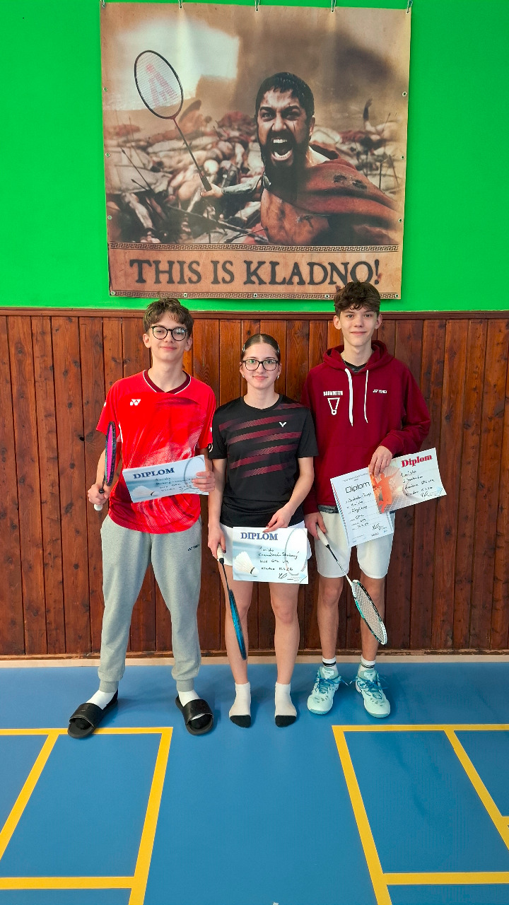 V neděli 15.3.2026 jsme pořádali dvoj turnaj kategorií U15 a U19. V kategorii U15 jsme zástupce neměli, naopak v kategorii U19 jsme měli 3 zástupce a ti se náležitě činili. Byli to Kíja Charvátová, Natík Skrčený a Kuba Svoboda. V početném poli soupeřů se naši Kája s Náťou popasovali s oponenty nejprve v mixu, kdy v terminologii start cíl proletěli polem soupeřů naprosto jednoznačně a mohli společně stanout na stupínku nejvyšším. Ve dvouhrách byli zástupci jen Náťa a Kuba. Náťa předvedl excelentní výkon, když v semfinále přejel nasazenou jedničku turnaje a stanul tváří tvář svému kladenskému kolegovi Kubovi. Zde se ukázala Kubova větší zkušenost a uzmul si finálový duel pro sebe. Posledními disciplínami byly čtyřhry. Kája spojila síly s plzeňskou hráčkou Martinou Jindrovou a Kuba nastupoval s tradičním parťákem Matějem Trupem z Mostu. Jak Kája s Martinou, tak Kuba s Matějem opět ukázali svoje dovednosti a celý turnaj vyhráli. Sečteno a podtrženo 4 zlato zůstalo v držení kladenských hráčů. Díky za předvedený výkon a makáme dál.